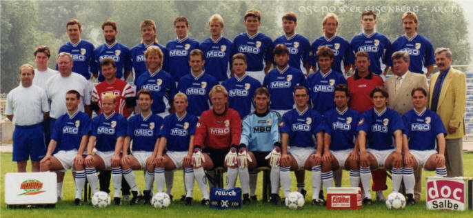 | Mitte v.l. | Wolfgang Schulze(Mannschaftsleiter) - Andre Michel(Physiotherapeut) - Heribert Zitzmann(Mannschaftsarzt) - Konrad Weise(Co-Trainer) - Jens König - Frank Nierlich - Thorsten Ziegner - Milos Nedic - Olaf Holetschek - Eberhard Vogel(Trainer) - Ernst Schmidt(Manager) - Bernd Bieräugel(Präsident) | |