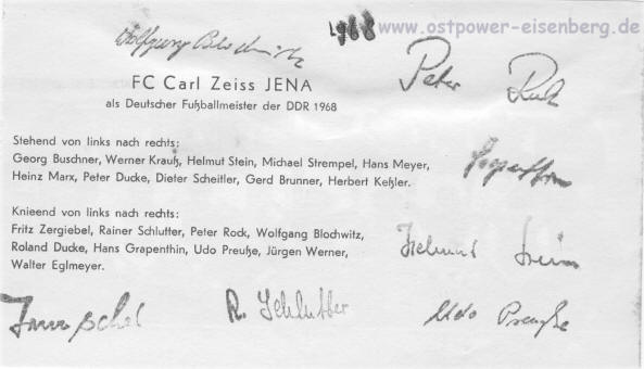 Deutscher Meister 1968 - Fotokarte/Rückseite mit Unterschriften