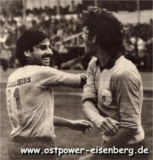 Freudenausbruch der beiden Torschützen gegen den FC Karl-Marx-Stadt -